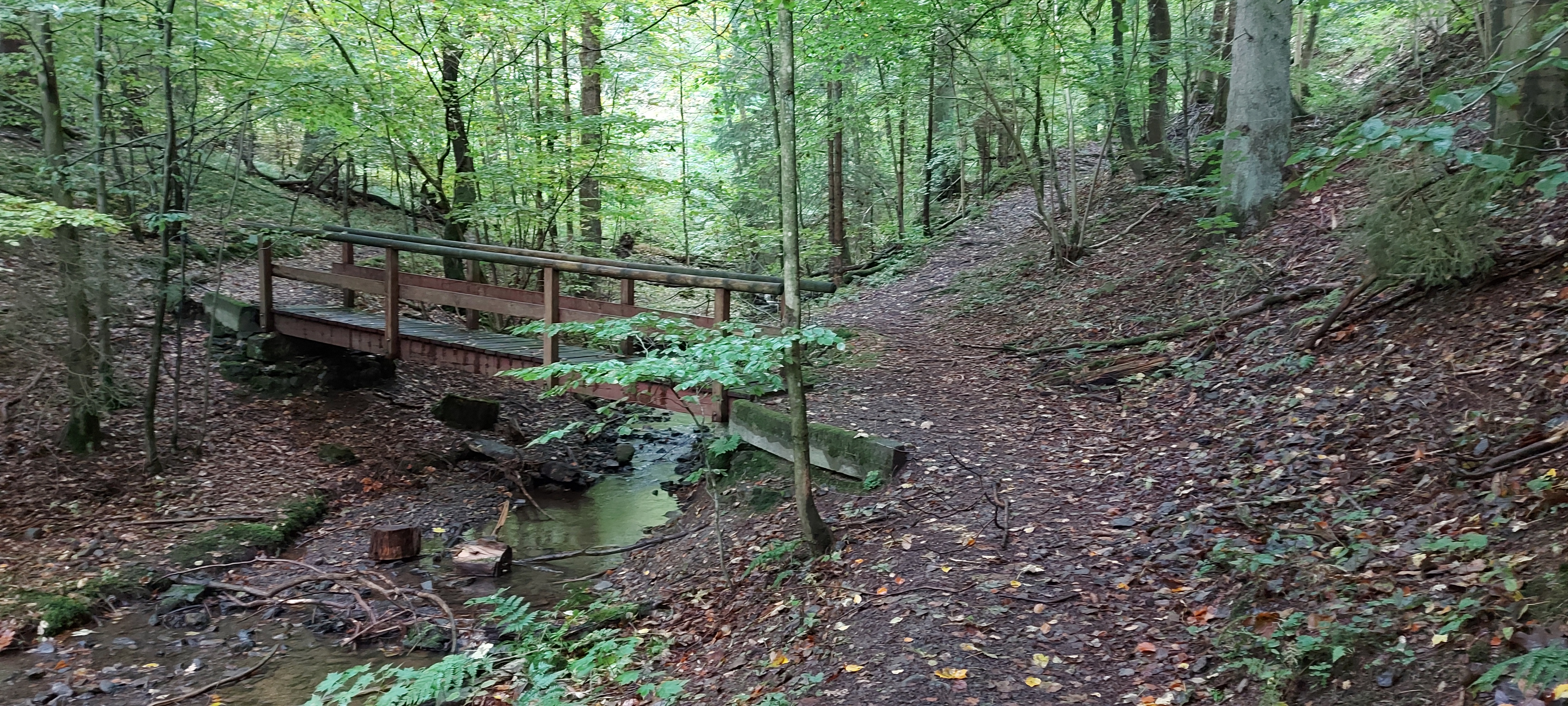 Es war zwar recht frisch und keine Sonne, aber trocken. Gutes Laufwetter. Aber gut, dass ich jetzt besser beschuht bin. Auf Halbschuhen wäre das eine Katastrophe geworden. Es gab breite Wege, steile Wege rauf oder runter, schmale Pfade auf und ab. Bin stolz und zufrieden: Habe mich nicht verlaufen, Der weg war zwar länger, aber das lag an momentanen Wegsperrungen wegen Forstarbeiten. Den Matsch mochte ich sogar meinen Wanderstiefeln nicht zumuten.
