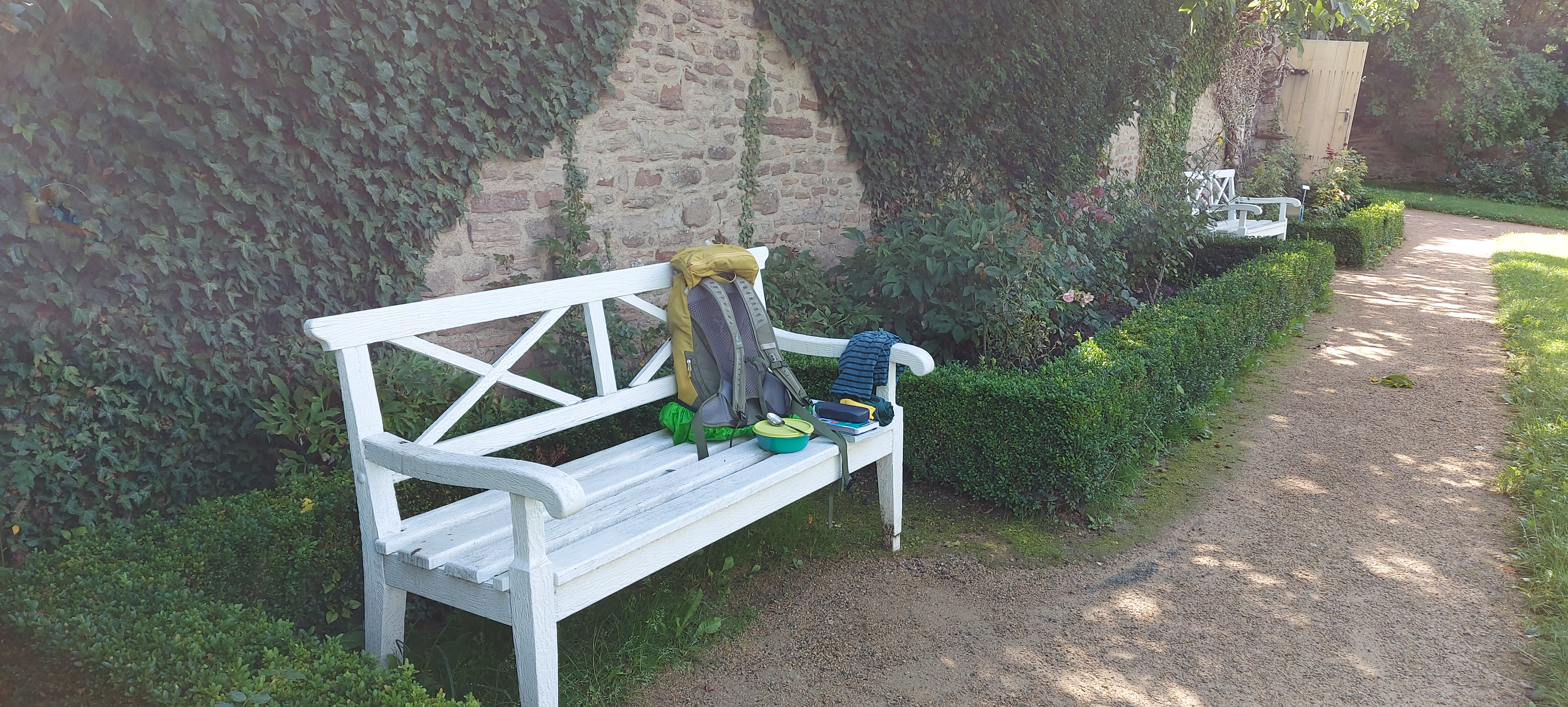 Um die angepriesene Klosterwanderung von Ilsenburg nach Wernigerode zu laufen, hatte ich den Wecker früh gestellt. Nach einem guten Frühstück ging es los: Rucksack packen, Schuhe an, Hut auf, um 7:42 Uhr den Bus Richtung Ilsenburg erwischen. Doch irgendwie war es wie verhext. Die Bushaltestelle war nicht da, wo ich sie nach Kartenlage vermutet hatte. Also bin ich Richtung Bahnhof gedackelt und habe doch auf den nächsten Bus gewartet. Dabei habe ich mir die Gegend etwas genauer angesehen: Durch die Einbahnstraßen sind die Haltestellen etwas gewöhnungsbedürftig angelegt. Aber der nächste Bus kam, das sog. HATIX-Ticket gilt. Allerdings fing es kurz vor Ilsenburg an zu regnen. Na gut, dann eben mit Schirm. Der Rucksack hat ja freundlicherweise einen Regenschutz. Auf zum ersten Kloster mit Klosterkirche. Die Kirche, die ich fand, war nicht die gesuchte, aber das Kloster samt Stempel habe ich gefunden. Trotz Baustelle! Danach ging es auch schönen Waldwegen weiter. Erst noch im leichten Regen, später im schönsten Sonnenschein. Alles noch eben, fast wie im Flachland. Nur die Beschilderung war etwas dürftig auf der Strecke. Hieß es an der einen Stelle: Kloster Drübeck 1,5 km, kam danach leider kein Schild mehr dazu. Da hatte ich wohl eine Abzweigung verpasst. Ich war nach Navi gegangen… Ok, OSM und ich hatten nicht den besten Start heute. Im Fußgängermodus ist es gewöhnungsbedürftig. Aber mit einem Kilometer Umweg (oder etwas mehr?) bin ich am Ziel angekommen. Ein Picknick im klösterlichen Rosengarten schön im Schatten war neben einem weiteren Stempel der Lohn.