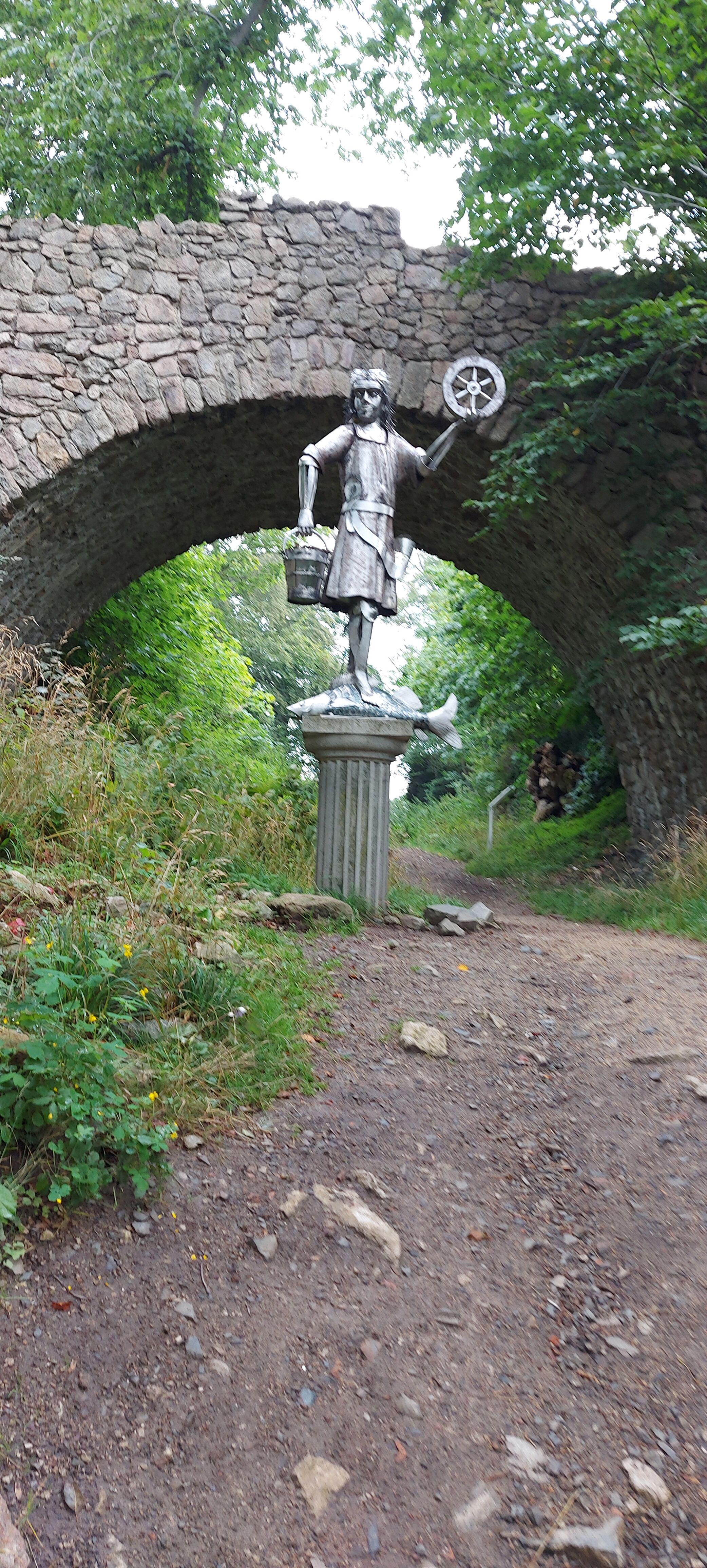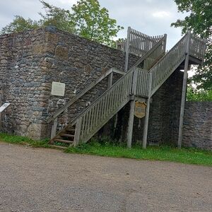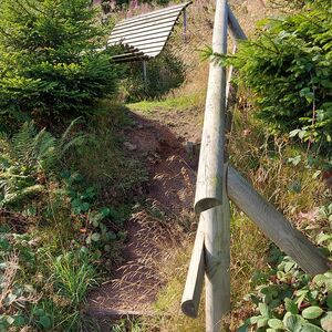 Ok, die geplante Tour sollte auf dem Burgberg an der Stempelstelle beginnen. Rauf kommt man mit der Seilbahn, wenn sie denn schon fahren würde. Na ja, man kann ja auch um den Berg rum und dann von der Seite auf den Weg zuhalten. Nach Navi geht das. Und Kaiserweg hört sich doch gemütlich an. War er aber nicht. Er ging steil bergauf. Wozu nochmal hatte ich ein frisches TShirt angezogen? Nach einer halben (wohl eher doch viertel) Stunde war ich verschwitzt, wie gestern nach der gesamten Wanderung. Aber Aufgeben ist keine Lösung und sooo weit ist ja nicht! Irgendwann sagte das Schild kleiner Burgberg 0,3km und großer Burgberg 0,4km. Das kann man schaffen!!! Ursprünglich gedacht, den Stempel links (bzw. rechts) liegen zu lassen, wollte ich ihn nun aber auch haben. Und ich war nicht die einzige Verrückte an diesem Morgen. Noch jemand hatte diese „Ochsentour“ hinter sich gebracht. Ein Einheimischer, ca. 20 Jahre jünger schnaufte genauso, wie ich.