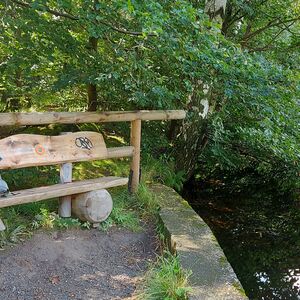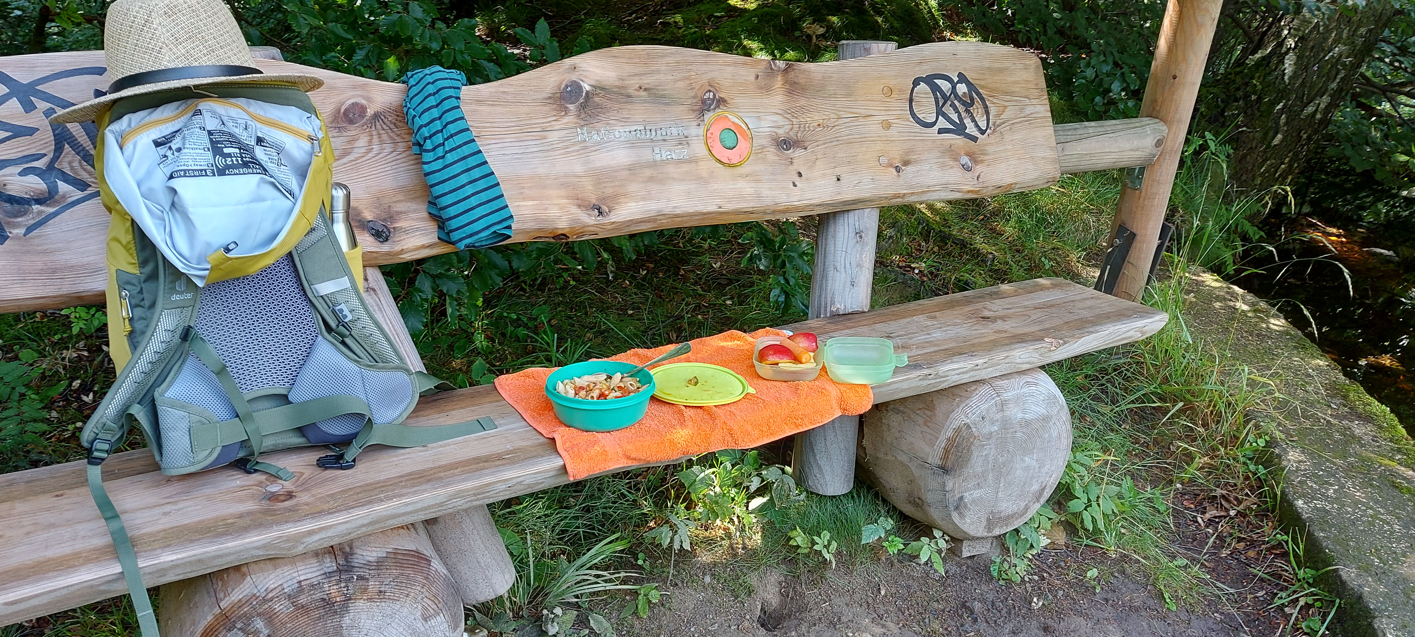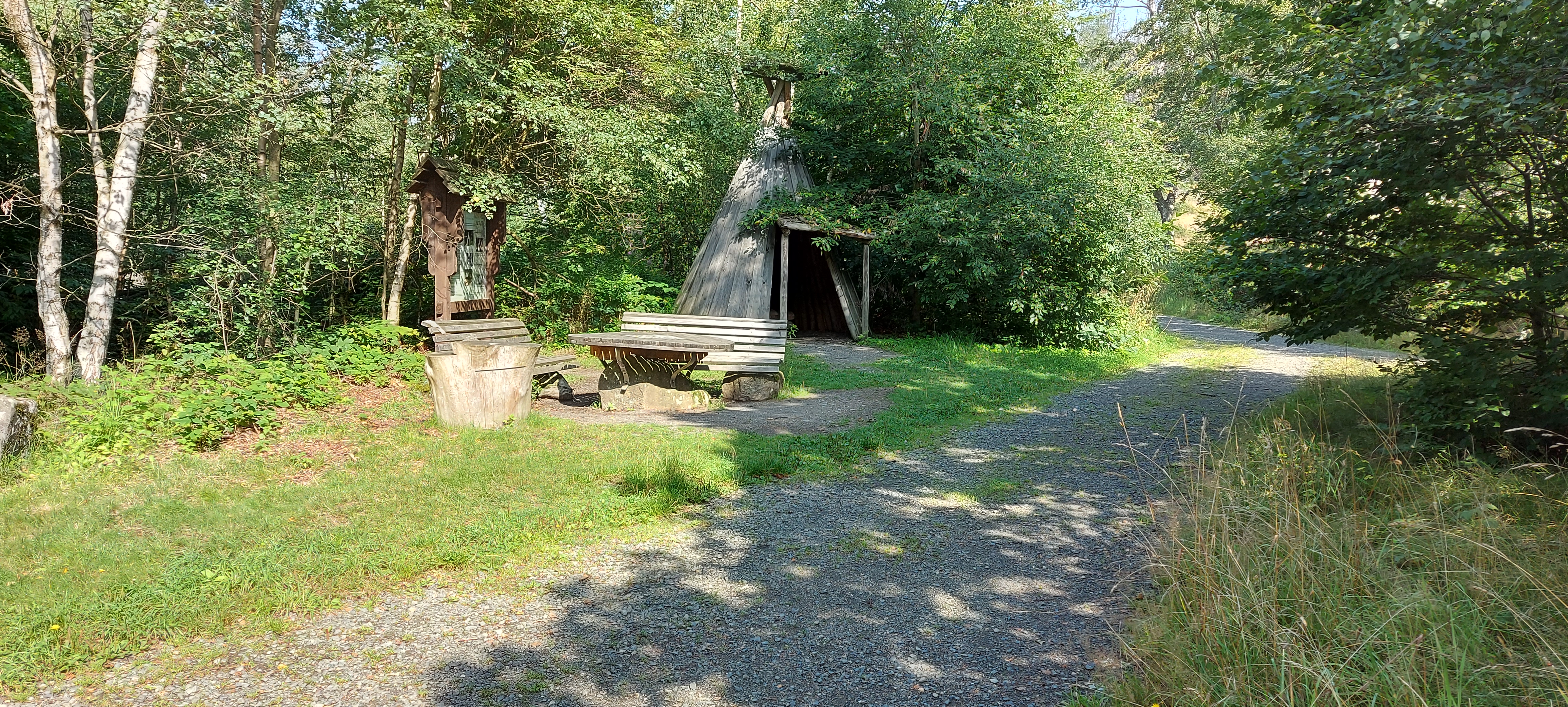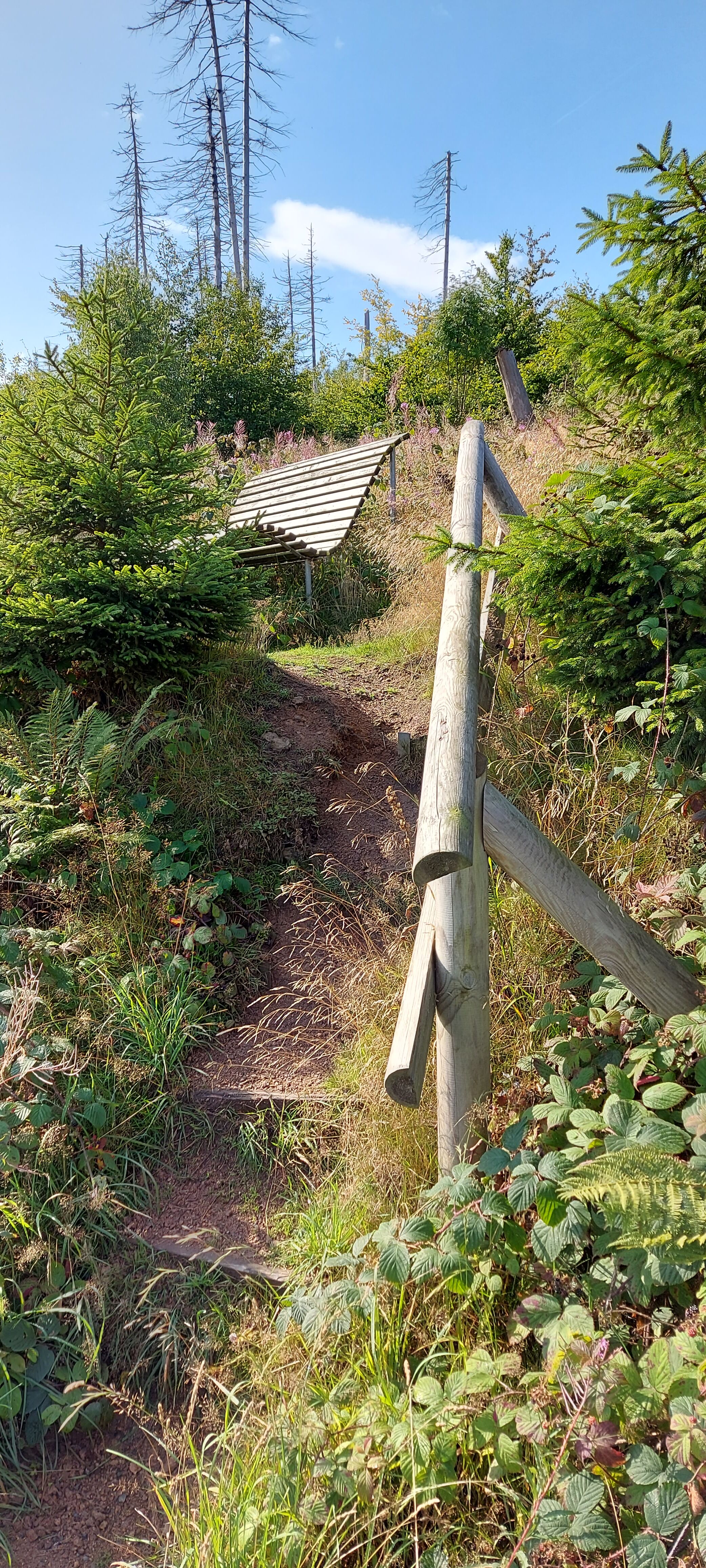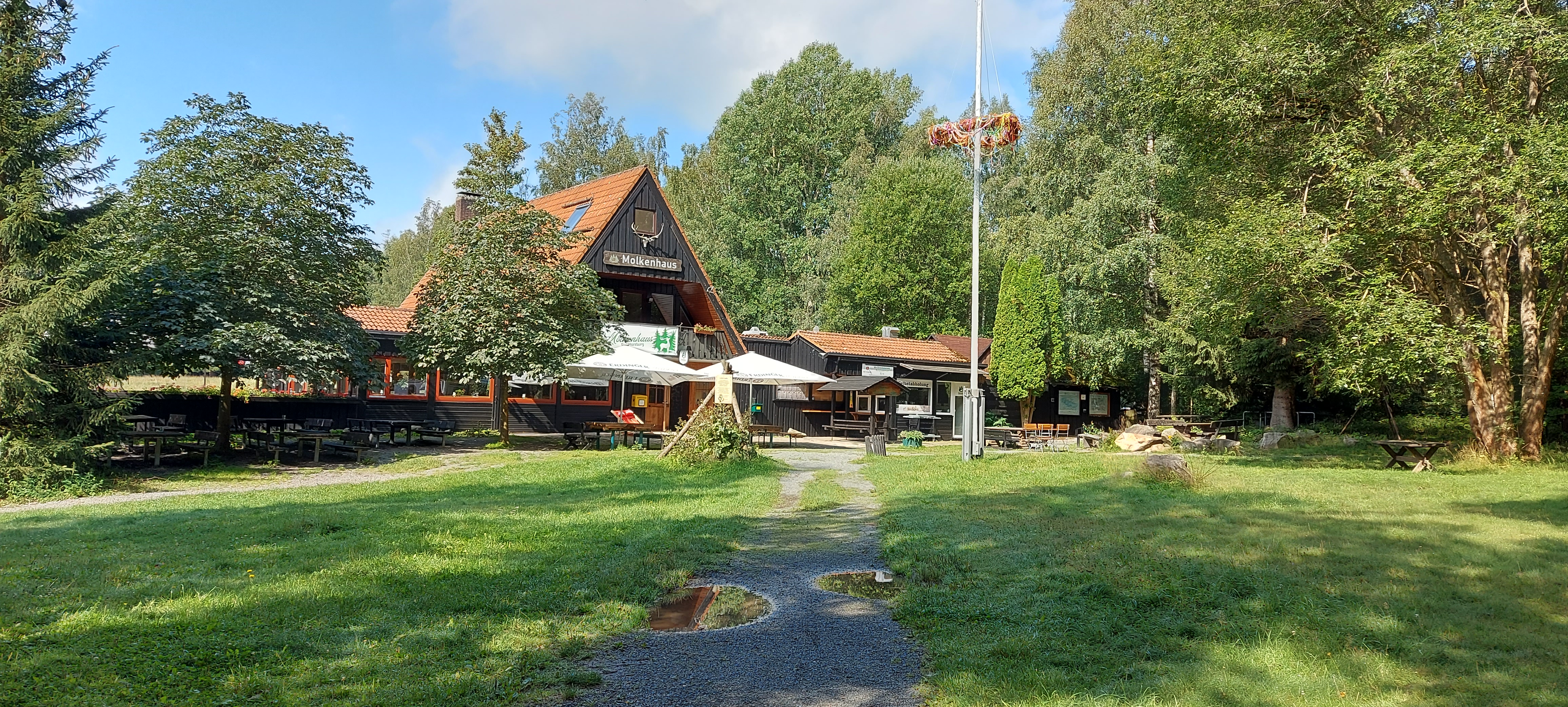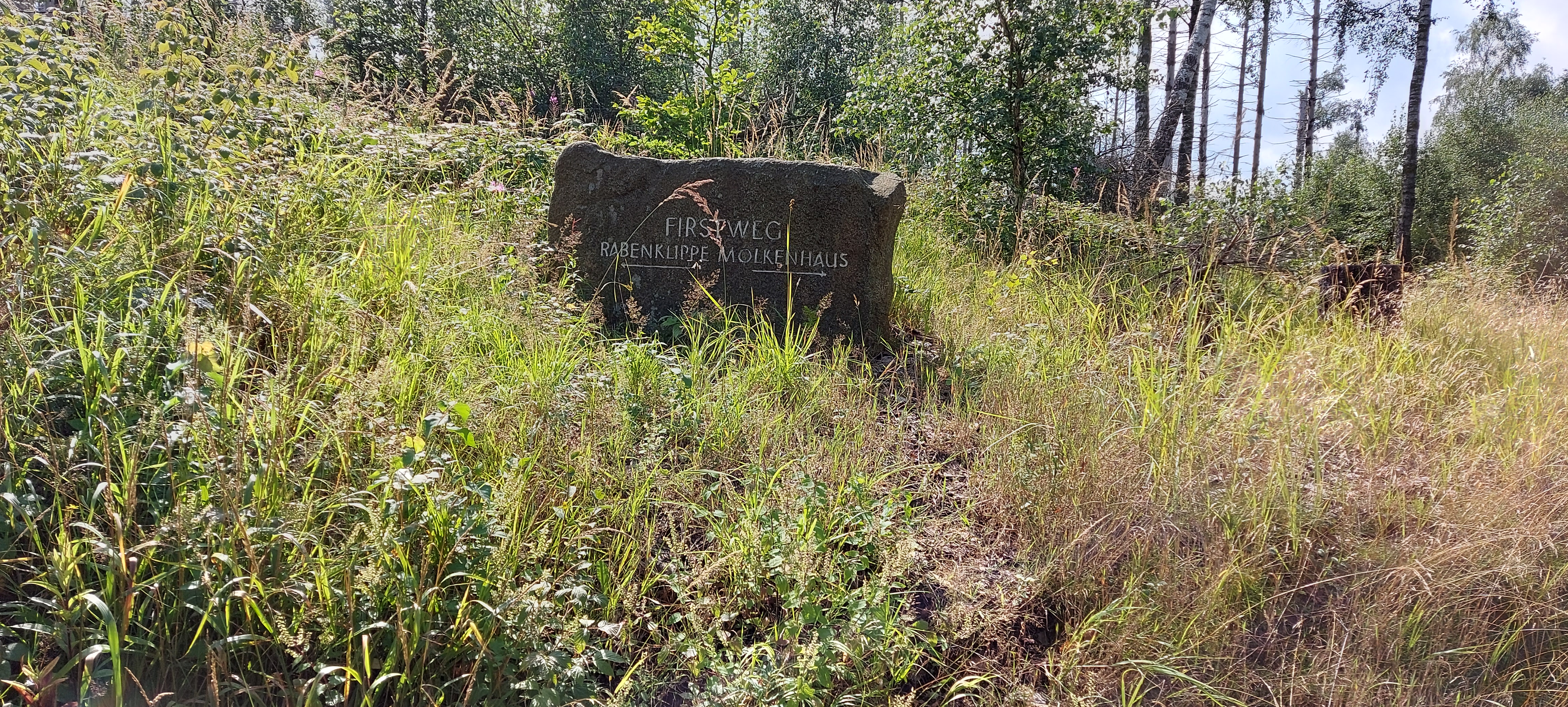 Bis zum Kreuz des Ostens sind wir dann gemeinsam gegangen, nette Unterhaltung inklusive. Vom Kreuz aus bin ich dann allein weiter zur Rabenklippe und den Luchsen. Da war meine zeitweilige Wanderbegleitung gerade gestern gewesen. An der Rabenklippe war im Gasthaus eine junge Frau noch am Durchwischen vor dem Gästeansturm. Es war erst kurz vor 10 Uhr, als ich dort meinen Stempel abholte. Aber ein Eis konnte ich schon bekommen. Auf die Frage, wo es denn weiter zur Rabenklippe weiterging, wurde mir der Weg durchs Haus gezeigt. Natürlich war mir als Hausfrau, die Wischen zu würdigen weiß, es peinlich, jetzt da durchs „frisch Gewischte“ zu watzeln. Aber das brachte nur ein Schulterzucken.