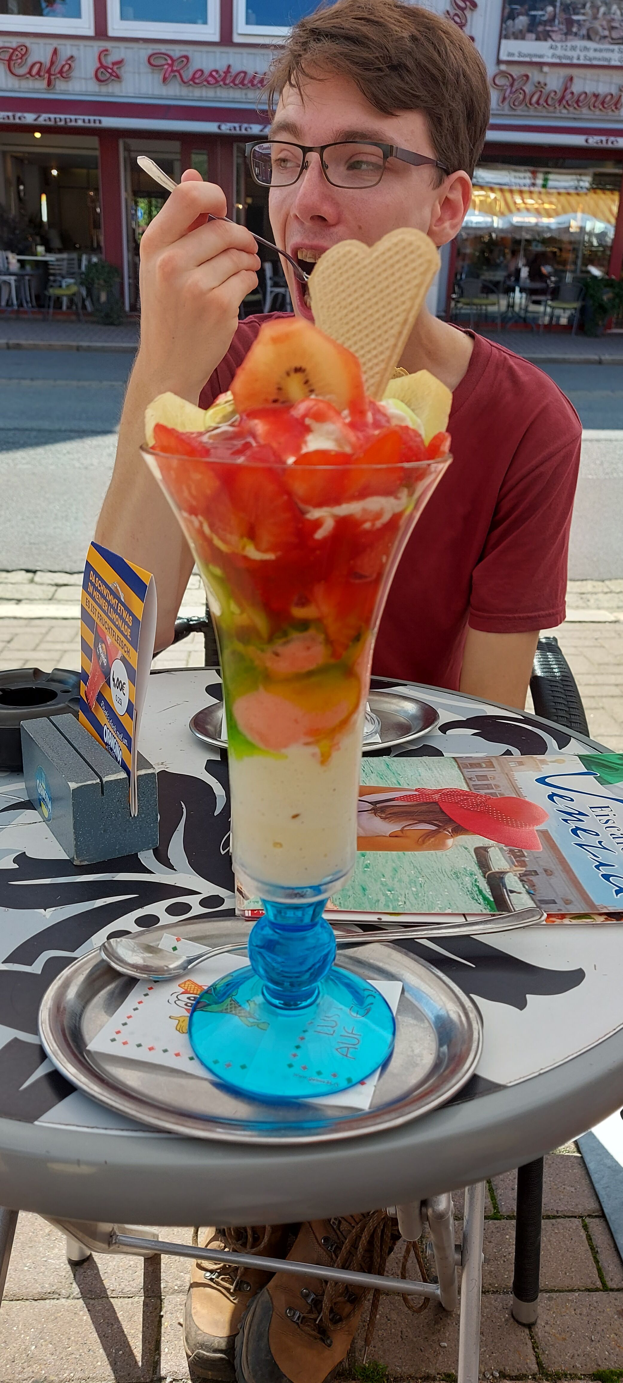 Zur Belohnung gab es dann in Braunlage erstmal ein Eis. Das war gleich mit eingeplant. Fast hätte uns dann der Bus noch einen Strich durch unseren Rückfahrplan gemacht. Er fuhr nicht an der normalen Haltestelle für die Rückfahrt, sondern an der etwas entfernten für die Hinfahrt! Und dass hätten wir fast zu spät gesehen. Aber es hat doch geklappt.