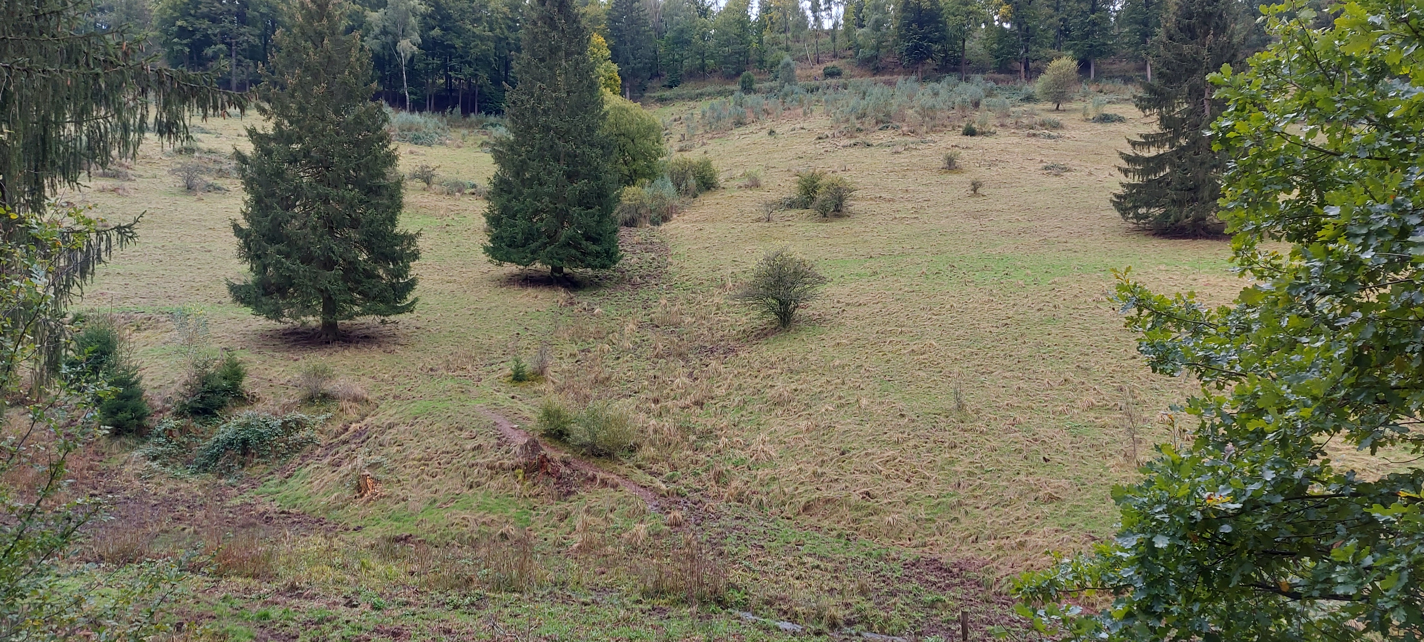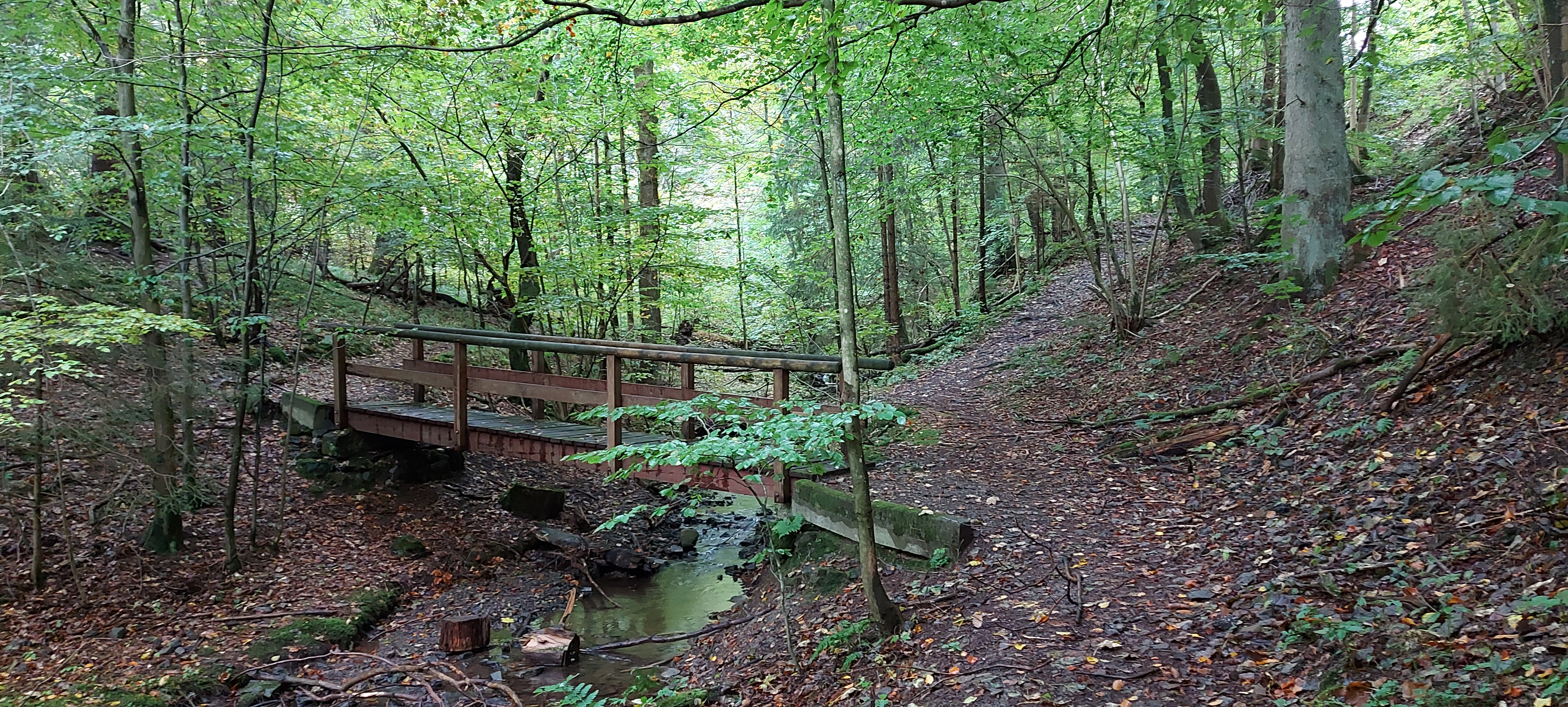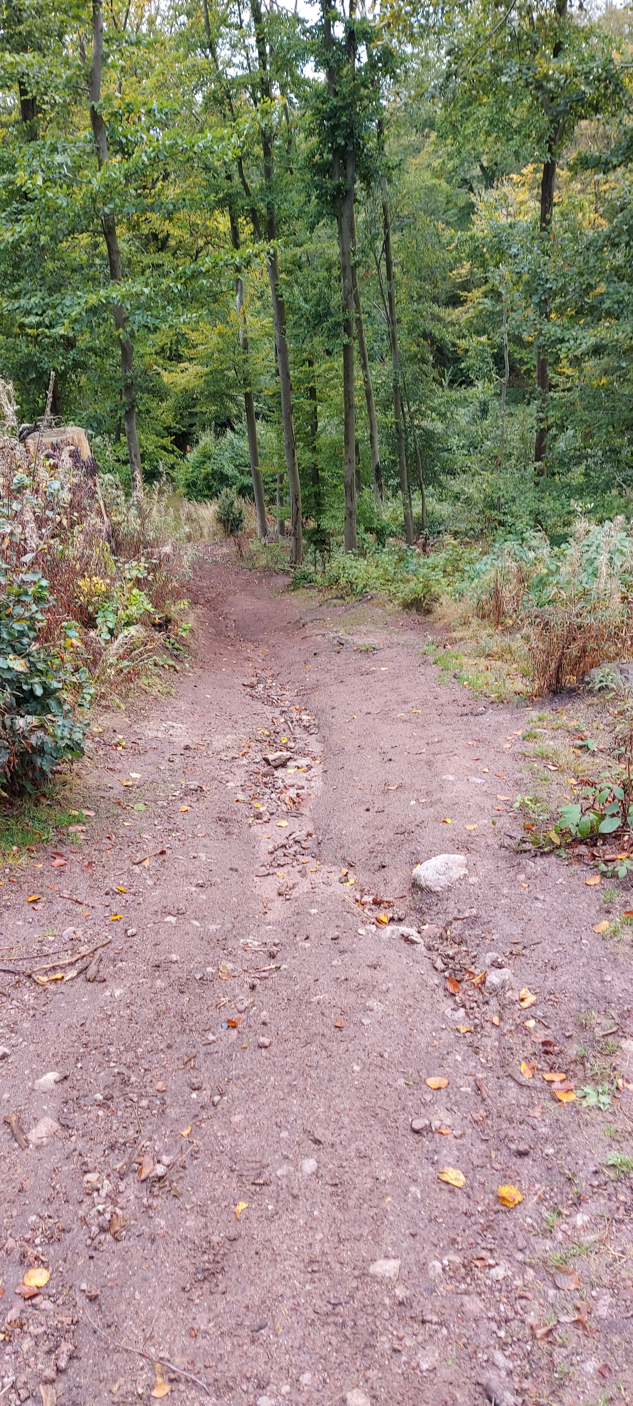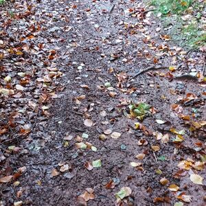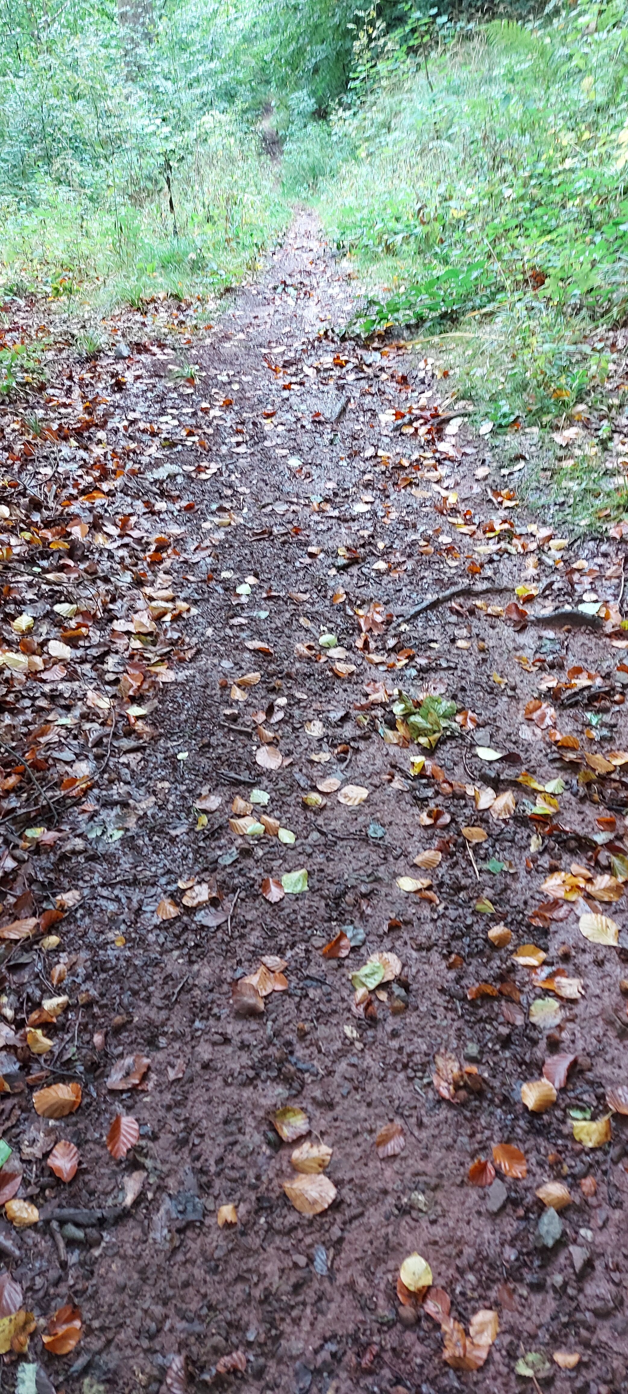 Es war zwar recht frisch und keine Sonne, aber trocken. Gutes Laufwetter. Aber gut, dass ich jetzt besser beschuht bin. Auf Halbschuhen wäre das eine Katastrophe geworden. Es gab breite Wege, steile Wege rauf oder runter, schmale Pfade auf und ab. Bin stolz und zufrieden: Habe mich nicht verlaufen, Der weg war zwar länger, aber das lag an momentanen Wegsperrungen wegen Forstarbeiten. Den Matsch mochte ich sogar meinen Wanderstiefeln nicht zumuten.