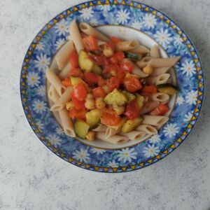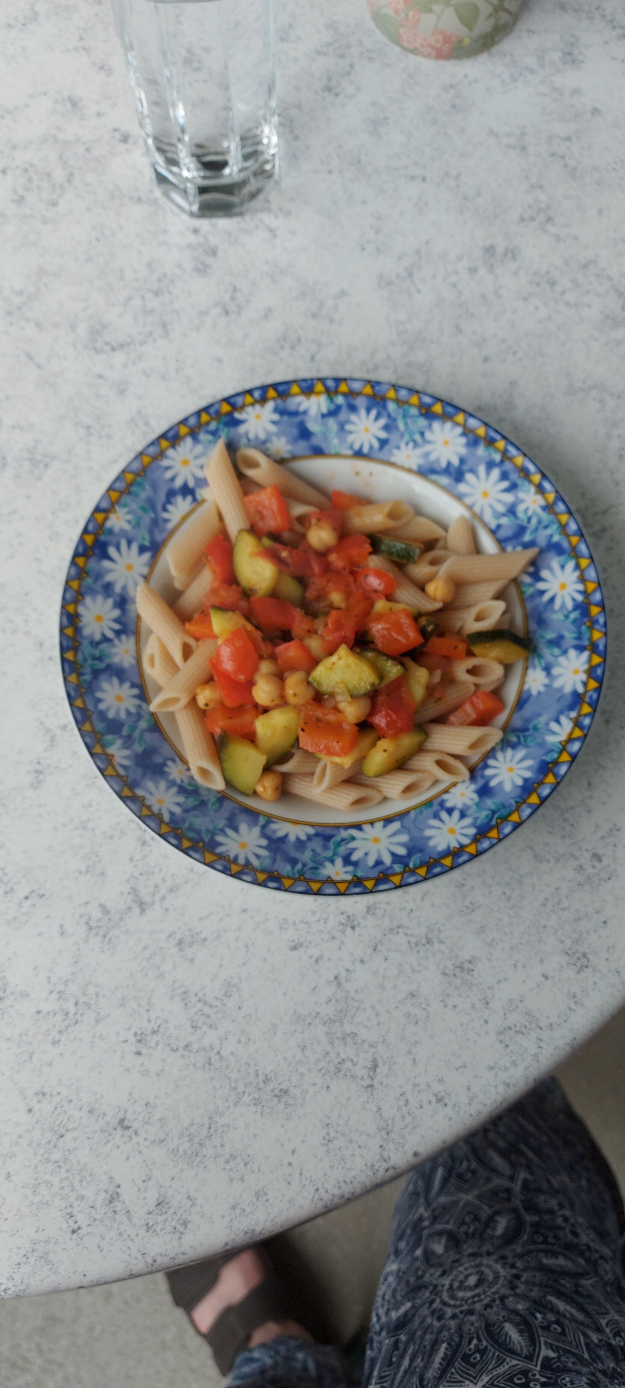 Zum Abendessen gab es wieder Nudeln, diesmal in der Variation Vollkorn mit Kichererbsen.